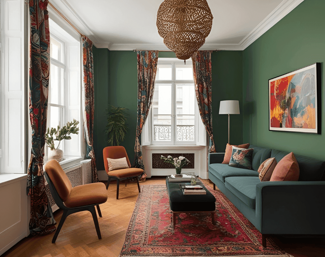 The Bohemian 1RK apartment style is an eclectic and creative, free-spirited design. It combines lots of colors, textures, and patterns to create a stylish and inviting space.